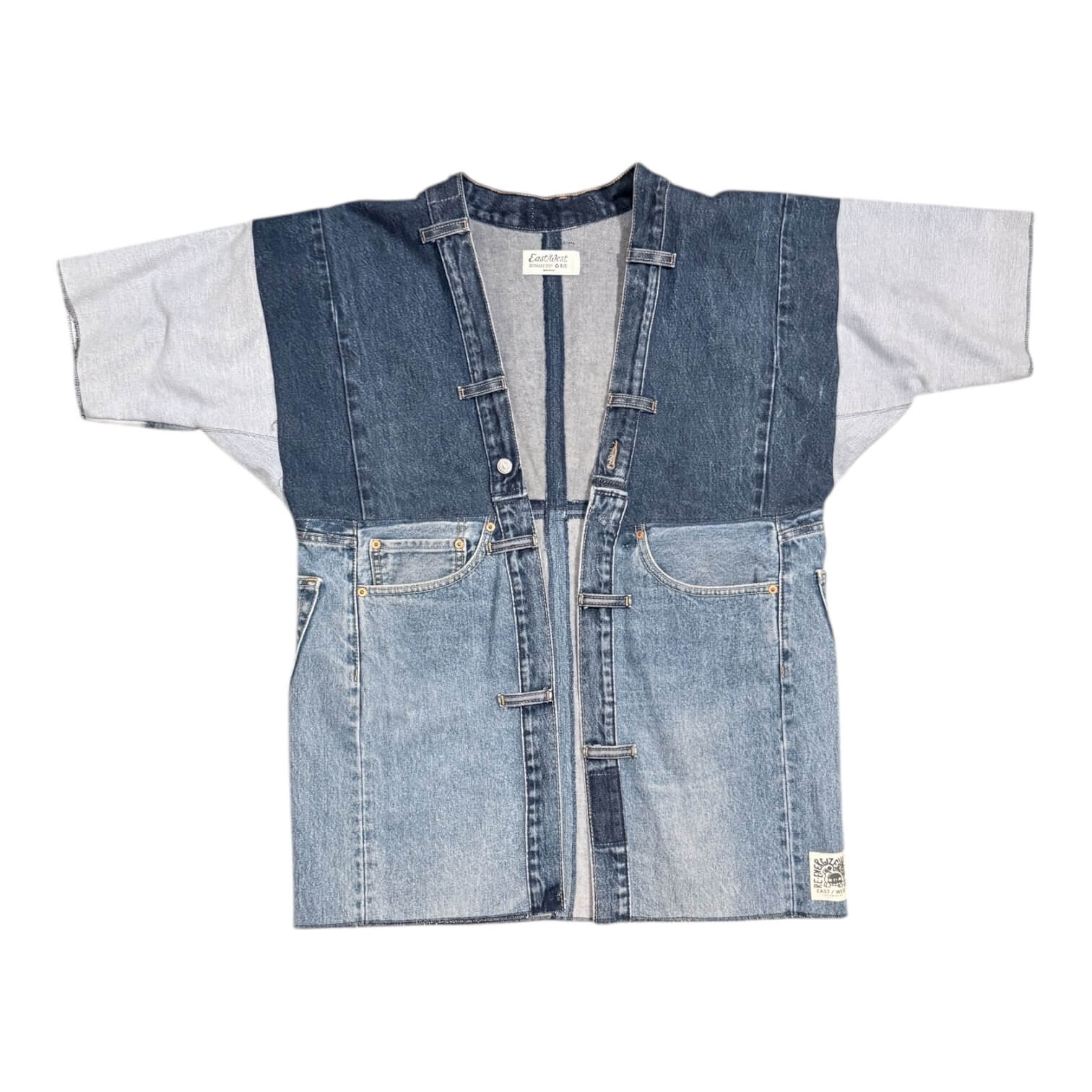Our original re-purposed jacket that we've been making in different versions for over 7 years now... This piece is constructed from 3-4 pairs of oversized, thrashed and unwearable vintage Jeans. Each piece of denim is carefully deconstructed and hand cut. These jackets are full of all sorts of love.